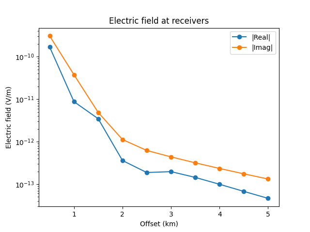 And finally we compute the electromagnetic response at receiver locations: